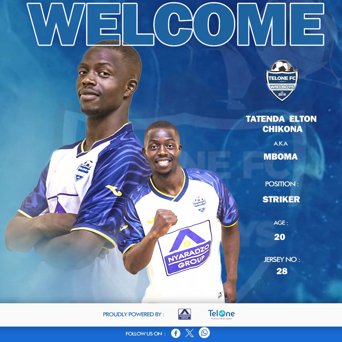“WiFi Boys announce the signing of 2023 PSL Rookie of the Year Elton Chikona. The 20 year old striker reunite with Herbert ‘Jompano’ Maruwa at TelOne from Dynamos,” TelOne stated.