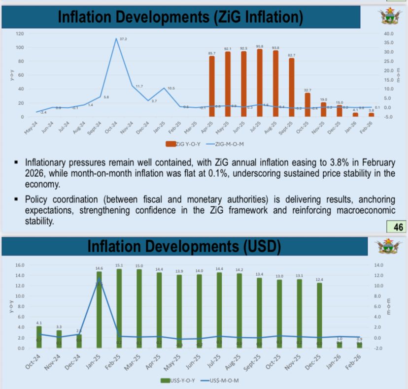 The trend is also reflected in the local currency, with ZiG annual inflation standing at 3.8 percent in February 2026, while month-on-month inflation remained at 0.1 percent.