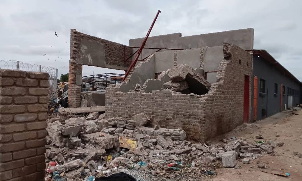 “We really dont know how it is happening. First we requested the TLB machine (excavator) to desilt Wamlala River to avoid flooding and we were told it was broken down. Now to come and destroy a structure we asked them to regularise, the same machine is available, this is funny,” said Councillor Emmanuel Takutaku.