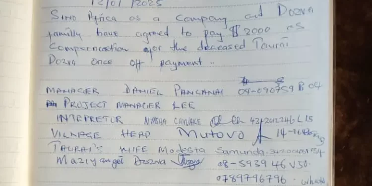 A tragic accident at Sino Africa Huijin Holdings Gold Mine in Old Mutare has sparked widespread outrage following allegations that the family of deceased miner Taurai Dozva was coerced into accepting inadequate compensation for his death.