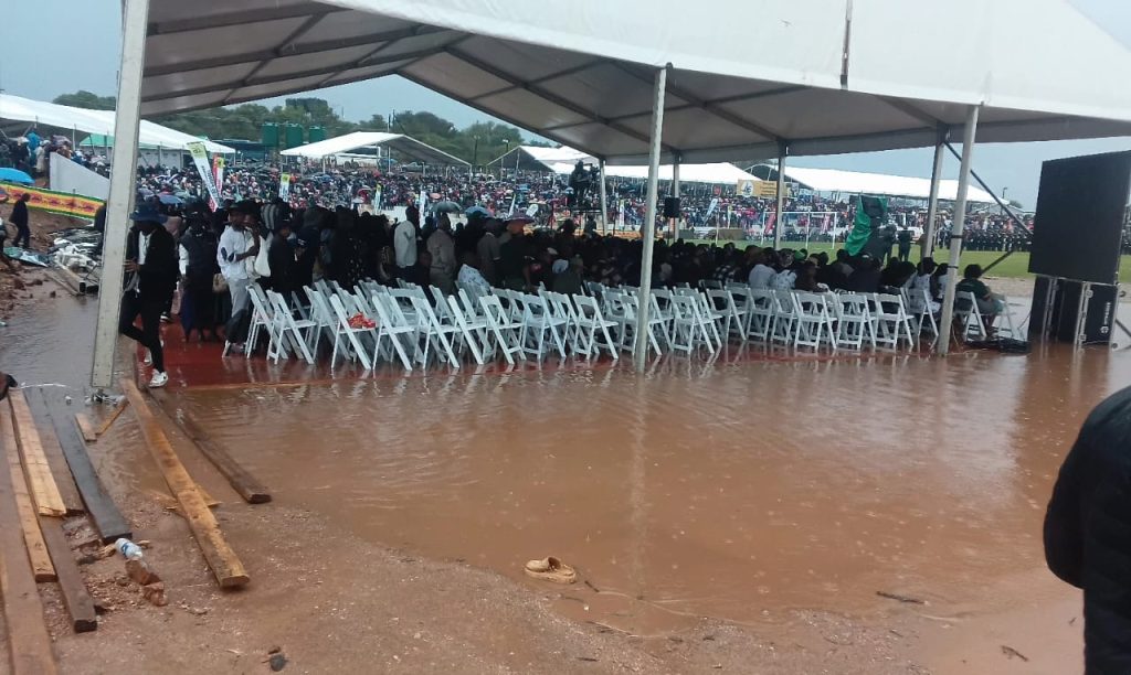 Rains which swept across Matabeleland South and pummelled the venue, a newly built Maphisa Stadium with a capacity of 10 000, done as part of dozens of projects at the small Growth point done in preparation for the country’s 46th anniversary.